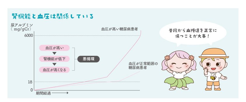 血圧をしっかり正常値に保つことで、糖尿病腎症の発症を遅らせたり、